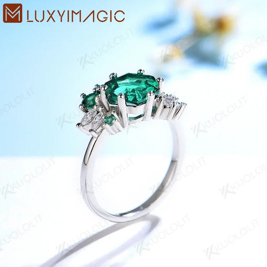 Luxyimagic Emerald Gemstones Rings for Women 925 Sterling Silver Hexagon Cut for Wedding Engagement Party Classic Christmas Gift