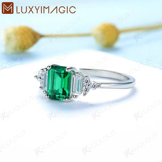 Luxyimagic Created Emerald Gemstone Rings for Women Solid 925 Sterling Silver Created Morganite Jewelry for Wedding Engagement