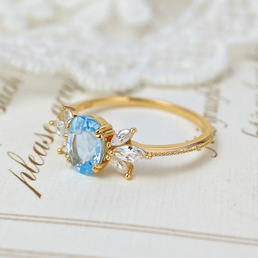 LAMOON Natural Topaz Ring For Women Gemstone Ring S925 Silver Gold Plated Sky Wing Wedding Engagement Ring Christmas Gift RI208