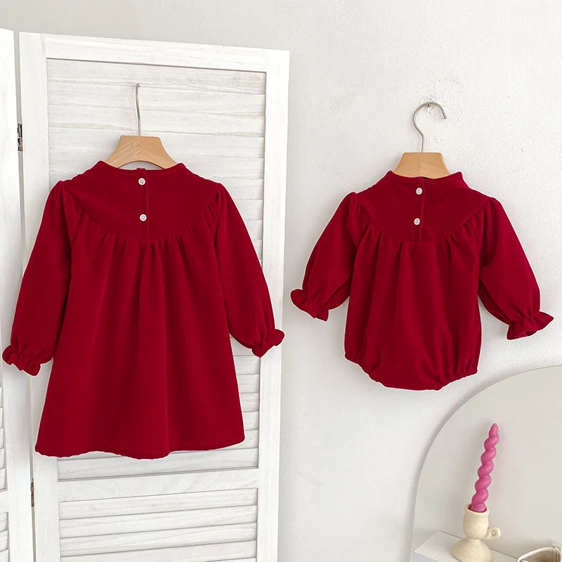 2025 Christmas Children Clothes New Year Clothing Sister Dress 0-6Yrs Girl Party Dress Kids Princess Dresses Baby Girl Romper
