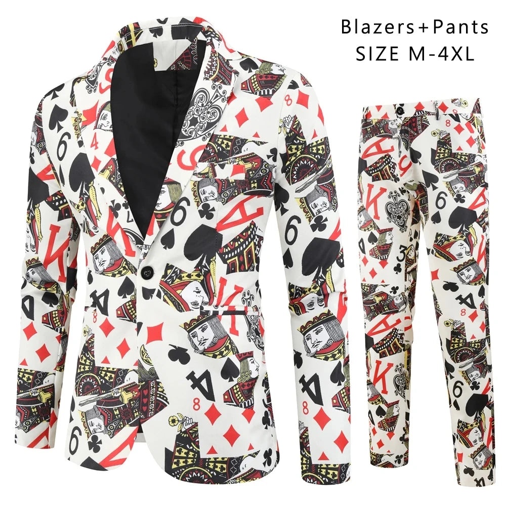 Blue Thin Men's Suit Two-Piece Set, Christmas Essential Loose Fit Asian Size Classic Christmas Outfit for Men